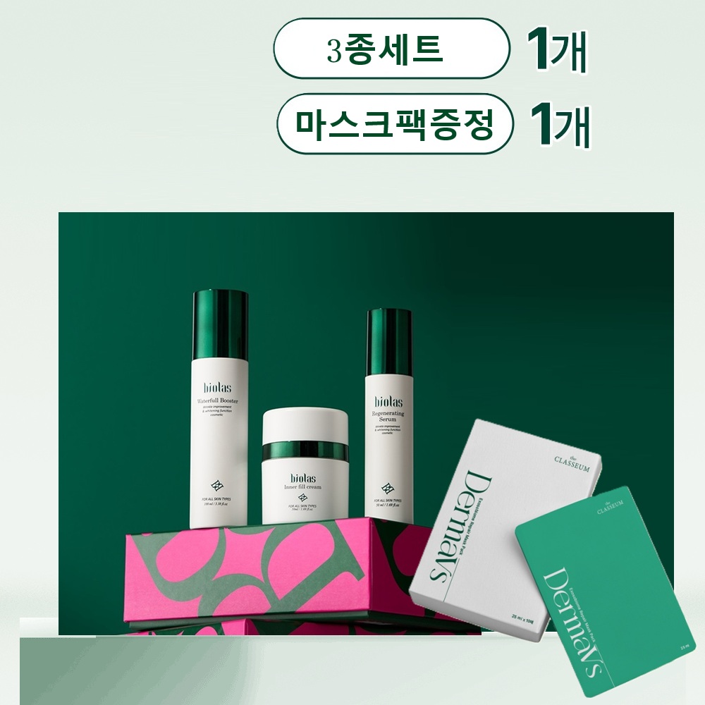 [비올라스]3종세트(워터풀부스터100ml,리제네레이팅세럼50ml,이너필크림50ml)+더마비스엑소바이옴리페어마스크팩(5매들이)1박스증정